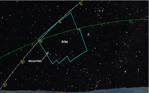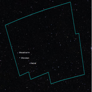 Astronomy Benalla Meeting Presentations - Wednesday 18th March 2015Constellation of the Month - Aries Presenter: Patrick WatsonThe night started by posing the question “What Year is It?”As it turned out the answer sought was -The Chinese Lunar New Year - the Year of the Goat.There was Capricornus - commonly represented in the form of a sea-goat: a mythical creature that is half goat, halffish. Not a real goat! The nearest to be chosen was Aries - Latin for ram. Not a goat but a cloven foot animal never theless.Aries carries with it an association with The First Point of Aries, the location of the Vernal Equinox.The First Point of Aries is so called because, when Hipparchus defined it in 130 BCE, it was located in the easternextreme of the constellation of Aries as seen in the time-simulation picture, below. The First Point of Aries isconsidered to be at the celestial "prime meridian" from which right ascensions are calculated. 130BCBecause of precession, the vernal quinox is now found in the constellation Pisces, as seen in the next picture. 2015The star Gamma Arietis (γ Ari, γ Arietis) at Mv 3.8 is in fact a binary system. It has the traditional name Mesarthim, ofobscure origin, and has been called "the First Star in Aries" as having been (at one time) the nearest visible star tothe equinoctial point - see below.The asterism which is intended to indicate the Ram is shown below:- and includes the stars Hamel (alpha Arietis), Sheratan (beta Arietis) and Mesatharim.The few deep-sky objects in Aries are very dim. Two supernova (SN 2003hl & SN 2003iq) have appeared in the spiralgalaxy NGC 772 - imaged below:Also shown is asteroid 6223 Dahl - named in honour of the Welsh-born author Roald Dahl (b. 1916 d. 1990). HisWilly Wonka and the Chocolate Factory and James and the Giant Peach are classics of children's literature. There are a number of meteor showers (generally - the Arietids) throughout the year which emante from Aries.Aries contains several stars with extrasolar planets including HIP 14810, a G5 star, which is orbited by three giantplanets (those more than ten times the mass of Earth).Other objects of interest include:Teegarden's Star, an M-type brown dwarf ilocated about 12 light years from the Solar System. This star was found tohave a very large proper motion of about 5 arcseconds per year. Only seven stars with such large proper motions arecurrently known.53 Arietis - a runaway star. A runaway star is one which is moving through space with an abnormally high velocityrelative to the surrounding interstellar medium. In the most favoured explanation scenario, it is thought that asupernova explosion occured in multiple star system which results the components moving away at high speed. This is believed to be the case where AE Aurigae, Mu Columbae and 53 Arietis are all moving away from each otherat velocities of over 100 km/s (for comparison, the Sun moves through the galaxy at about 20 km/s faster than[relative to] the local average). Tracing their motions back, their paths intersect near to the Orion Nebula about 2 million years ago. See below thecurrent positions (the constellations) of these three stars relative to Orion.An emission nebula in the constellation of Orion, Barnard's Loop (below) is believed to be the remnant of the supernova that ejected these stars.Images:Simulation Curriculum Corproration: Starry Night Pro PlusWikipediaNASA